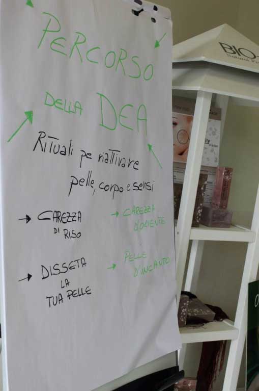 Per esempio il corso ”IL PERCORSO DELLA DEA” svoltosi il 24 e 25 maggio 2015, una serie di rituali per celebrare la bellezza e l’armonia dei sensi con un massaggio riattivante del tono tessutale ed energetico con protagonisti assoluti Olio di cocco, Aloe e Polvere di riso: